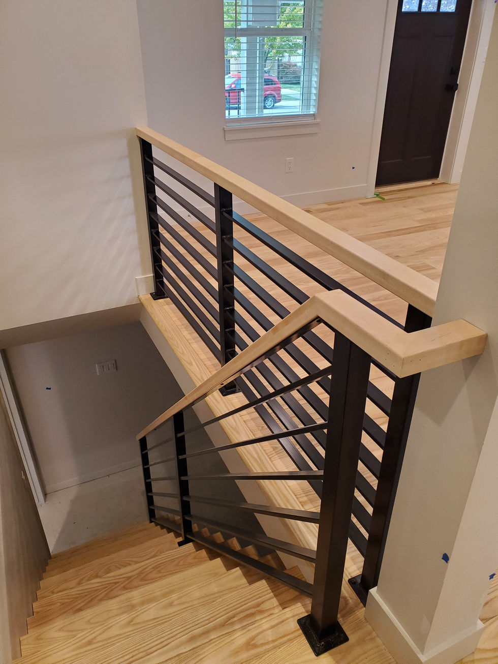 Explore a collection of modern staircase designs featuring metal and wooden railing, cable railing, and scenic views. These designs are perfect for residential and commercial spaces, adding a touch of elegance and functionality.
